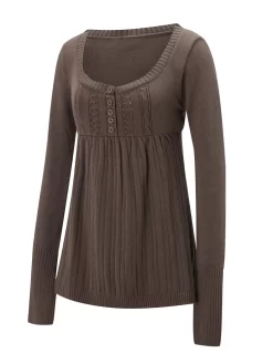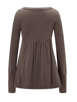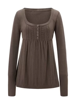 Women Autumn Knitted Tops Solid Color Long Sleeve Button Square Neck Tunic Blouse Sweaters